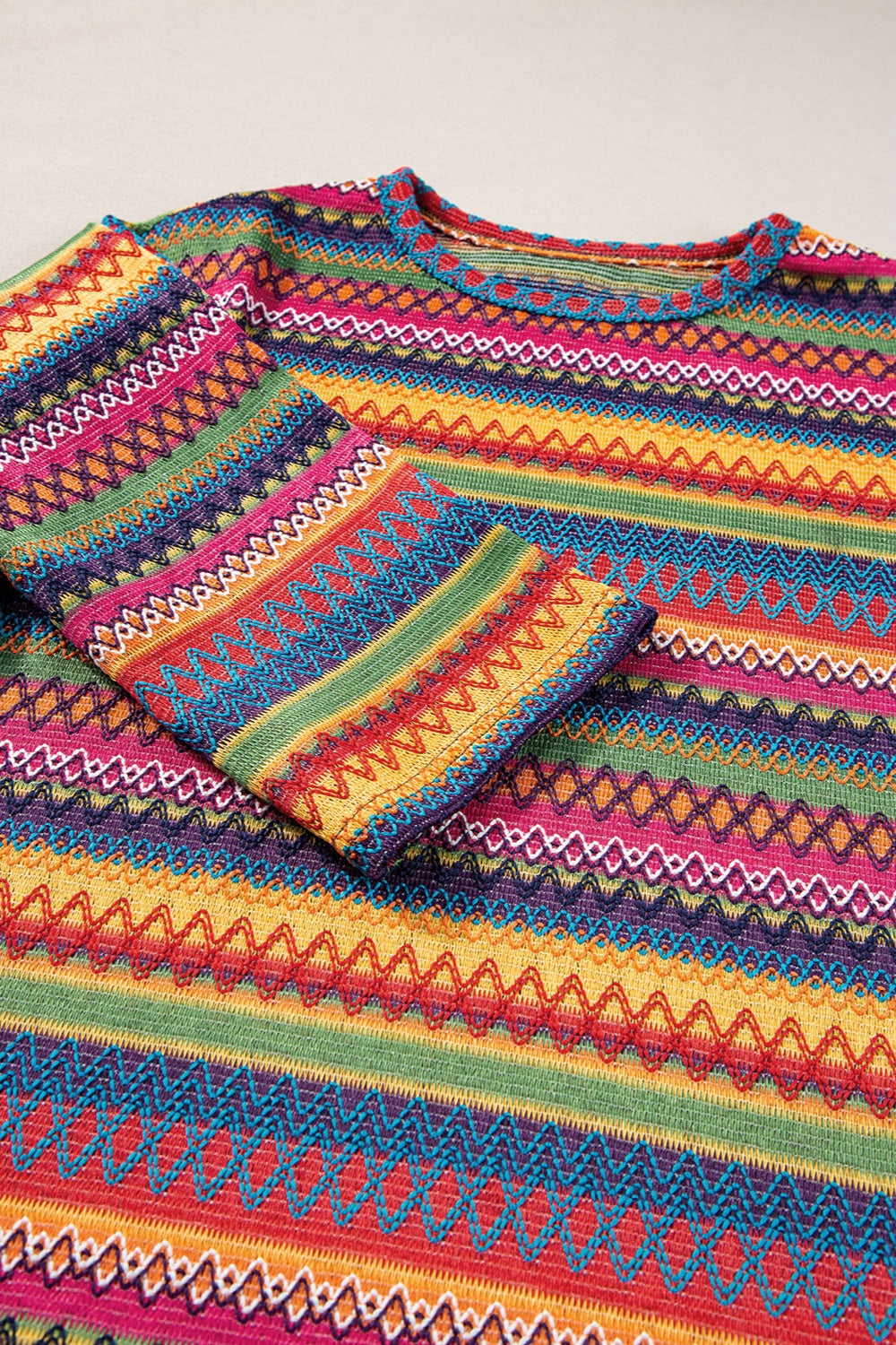 Contrast Round Neck Long Sleeve Top