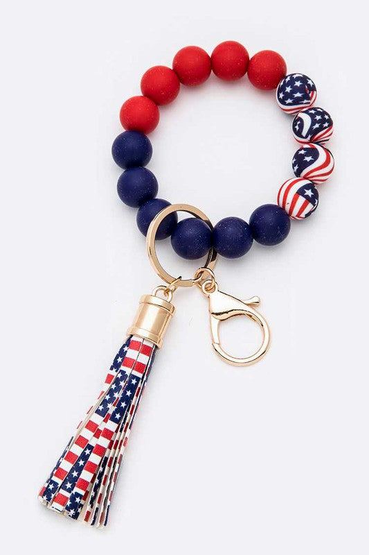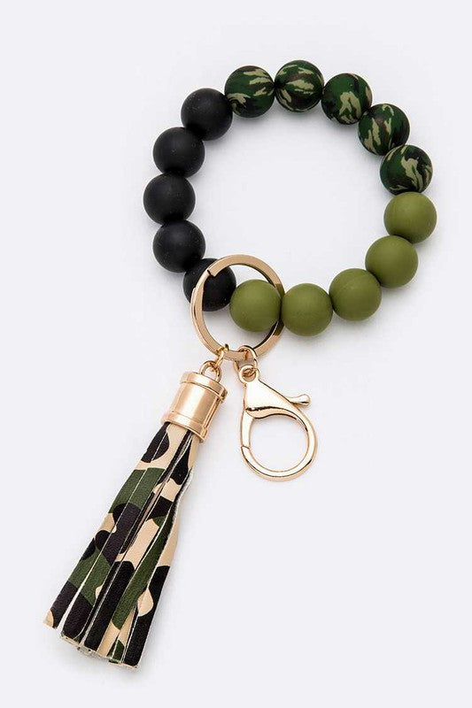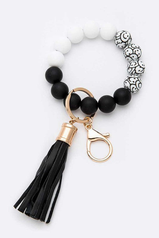 Silicon Printed Beads Tassel Bracelet Key Chain