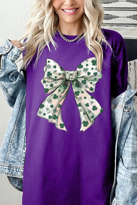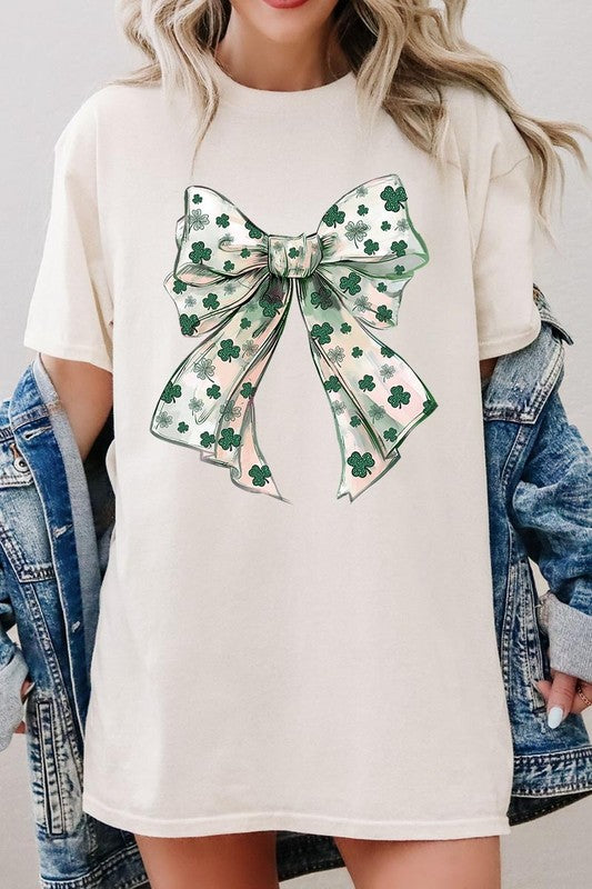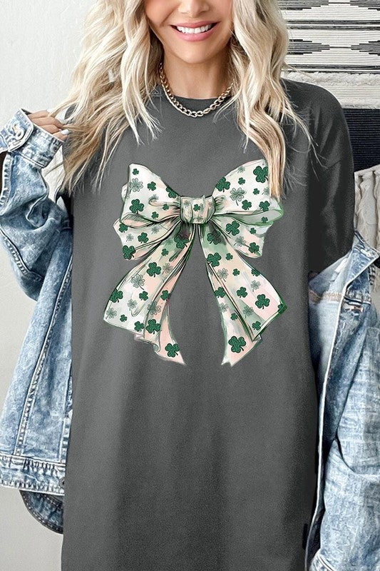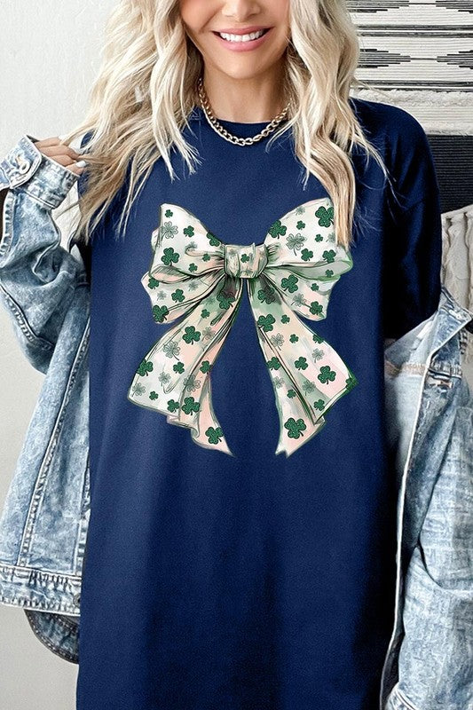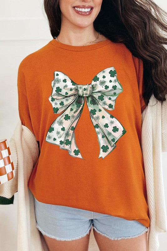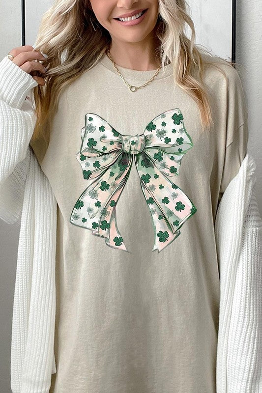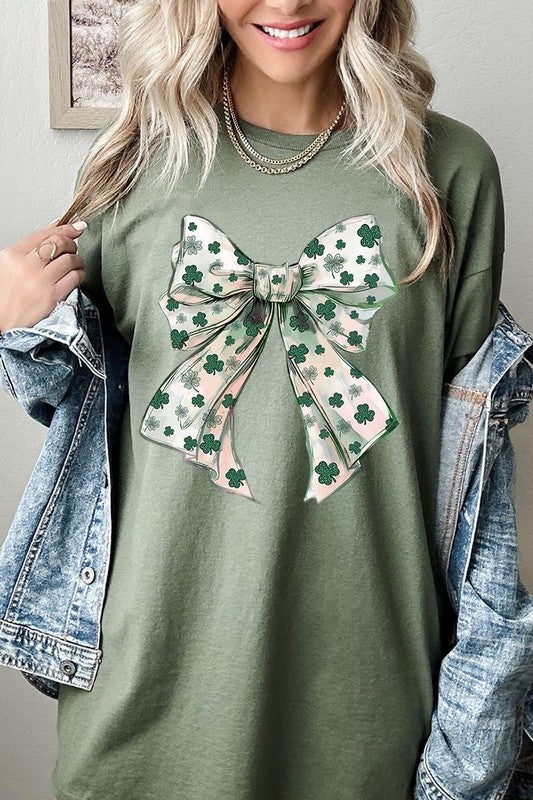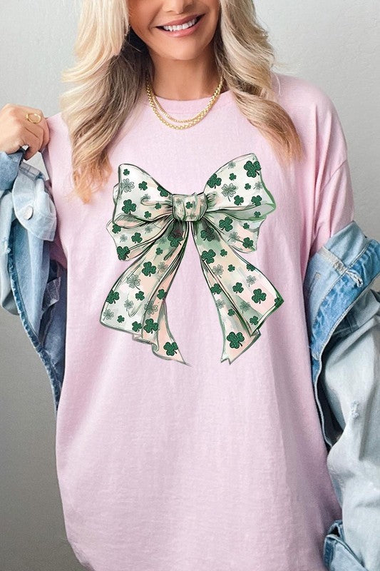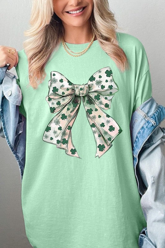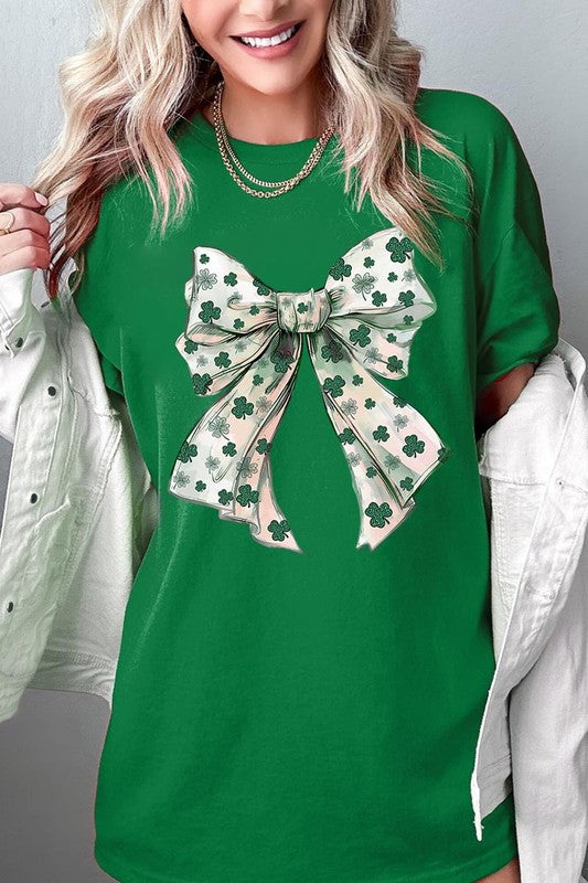 St Patrick's Day Coquette Bow Graphic Plus Heavy Cotton Tee. **PLUS SIZE**